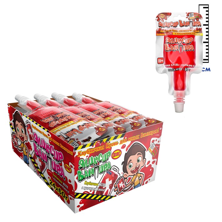 Фруктовое желе с кокосовыми кубиками Эликсир Вампира (Китай) 60г15,93 руб. за штуку (в упак. 24 шт.) |