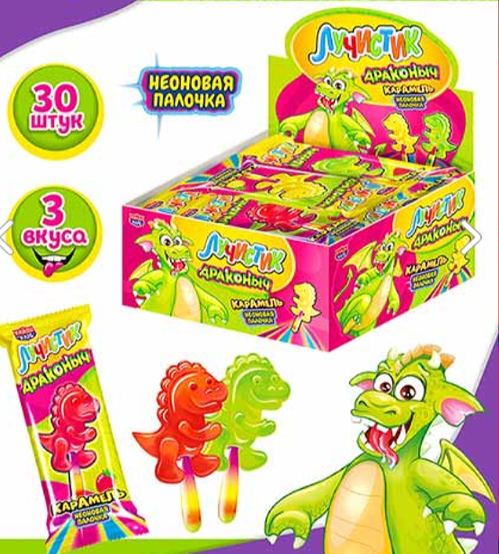 Карамель на неоновой палочке Канди Лучистик Драконыч 10 гр9,83 руб. за штуку (в упак. 30 шт.) |