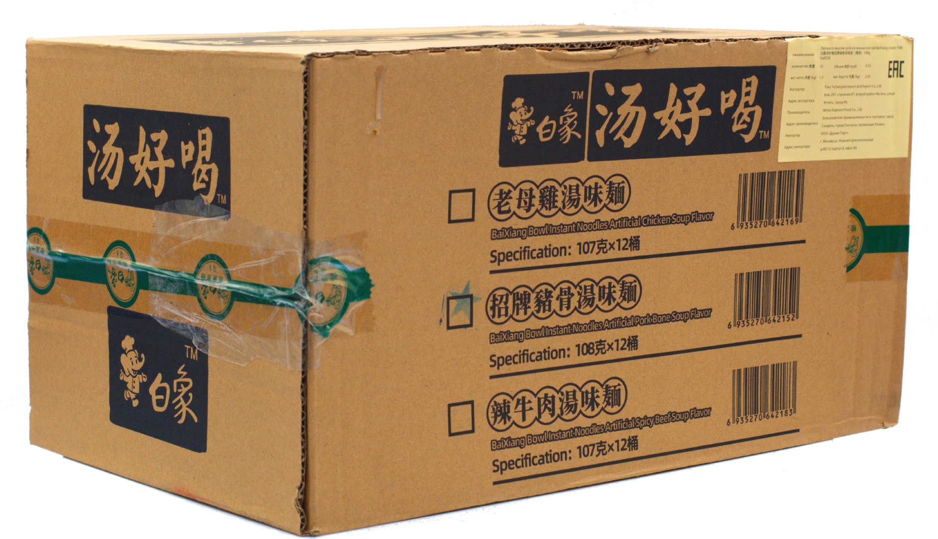 Лапша BaiXiang со вкусом супа из свиных костей стакан 108 гр101,25 руб. за штуку (в упак. 12 шт.) |