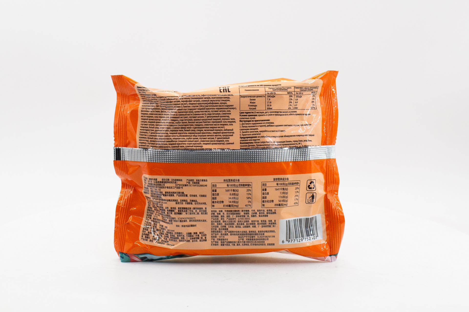 Лапша быстрого приготовления LeiQiaс С острой говядиной 119 гр94,90 руб. за штуку (в упак. 24 шт.) |