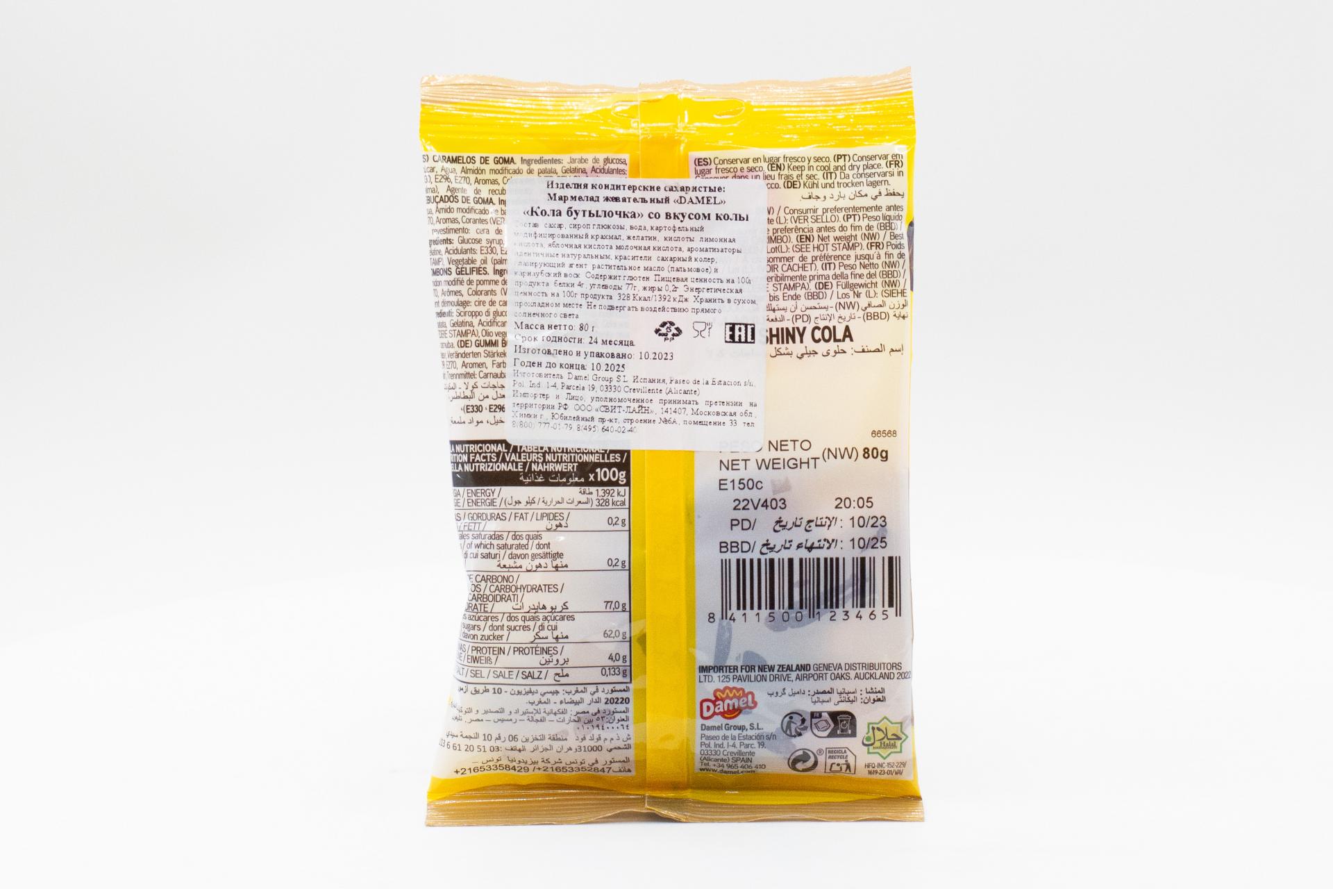 Мармелад жевательный Damel Halal Кола бутылочка 80 гр110,50 руб. за штуку (в упак. 12 шт.) |