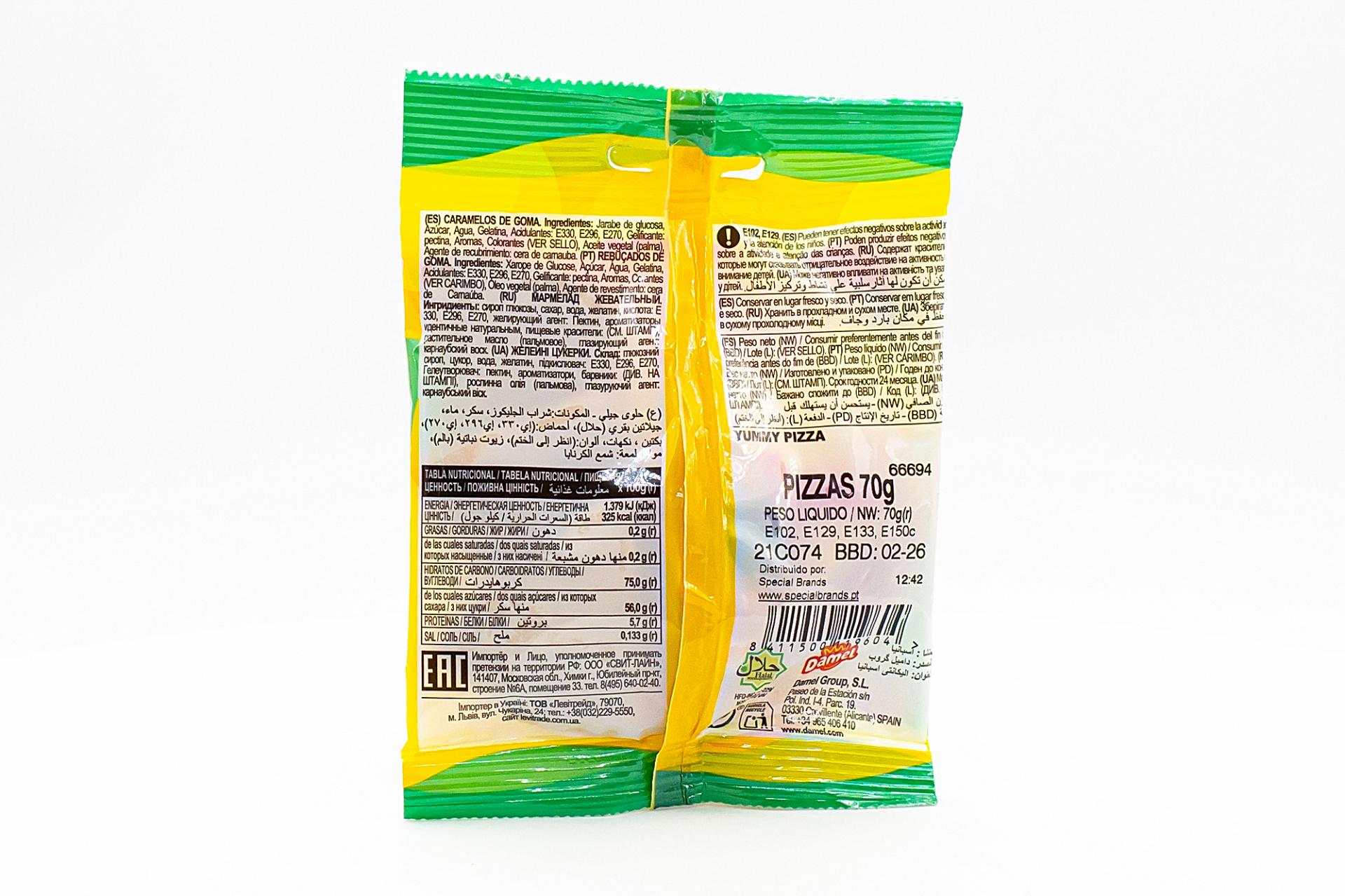 Мармелад жевательный Damel Halal Пицца 70 гр106,58 руб. за штуку (в упак. 16 шт.) |