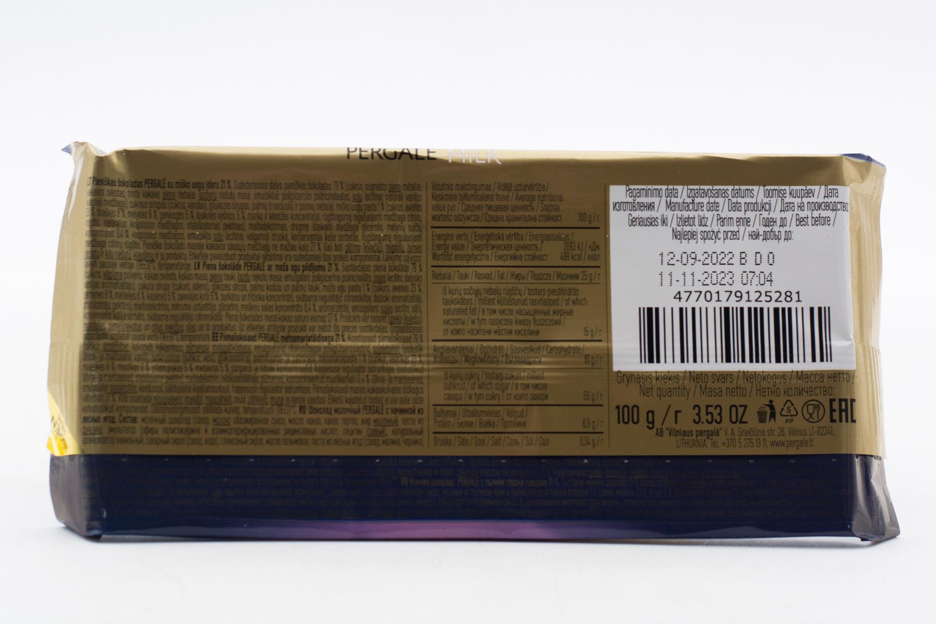 Молочный шоколад Pergale с начинкой из лесных ягод 100 гр0,00 руб. за штуку (в упак. 19 шт.) |