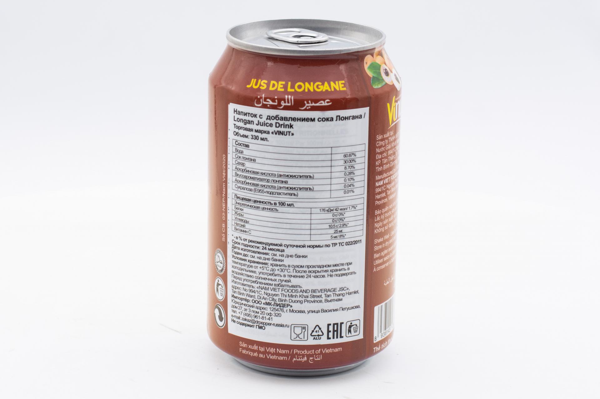Напиток сокосодержащий Vinut с соком лонгана 330мл49,99 руб. за штуку (в упак. 24 шт.) |