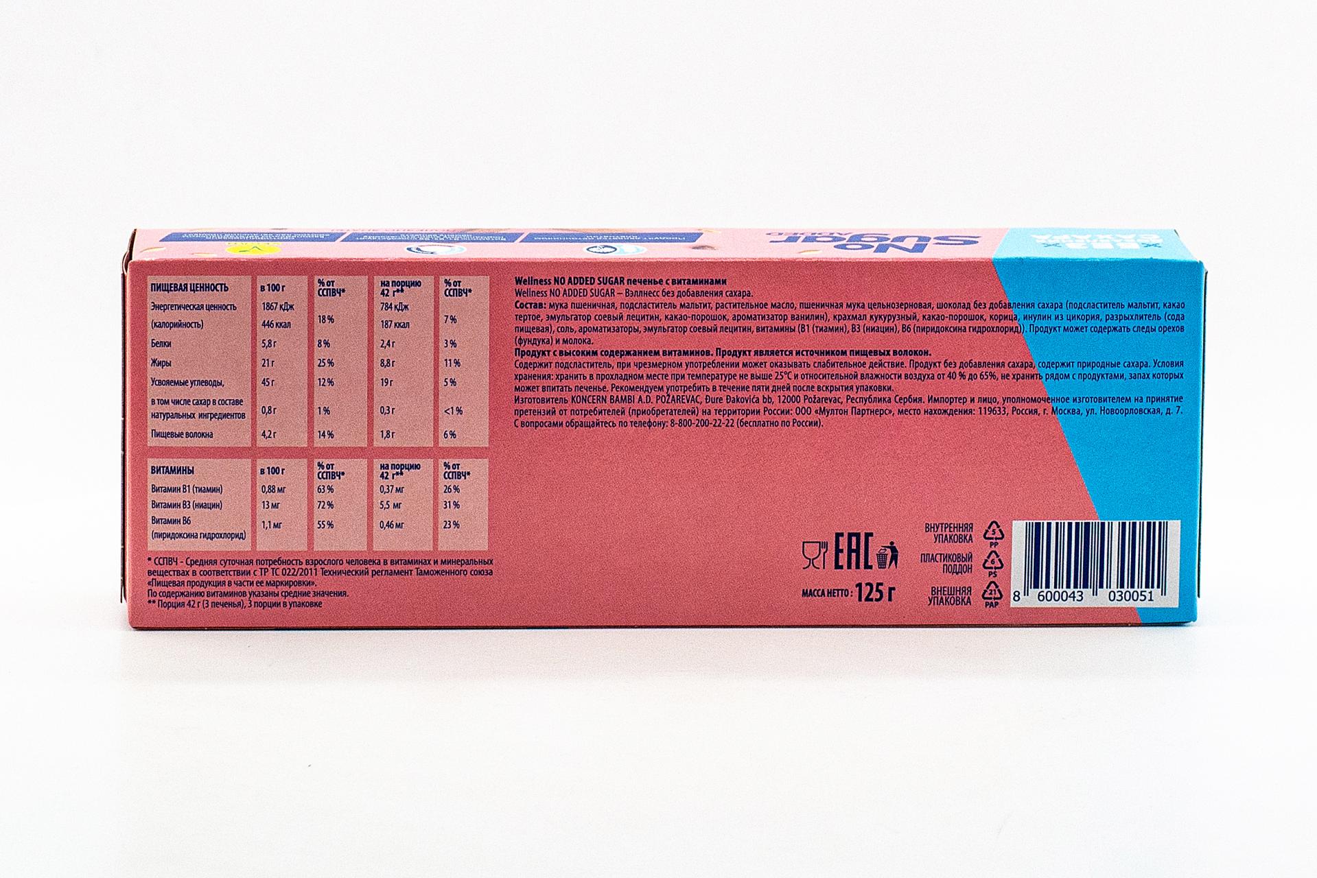 Печенье Wellness цельнозерновое без сахара с витаминами 125 грамм0,00 руб. за штуку (в упак. 10 шт.) |
