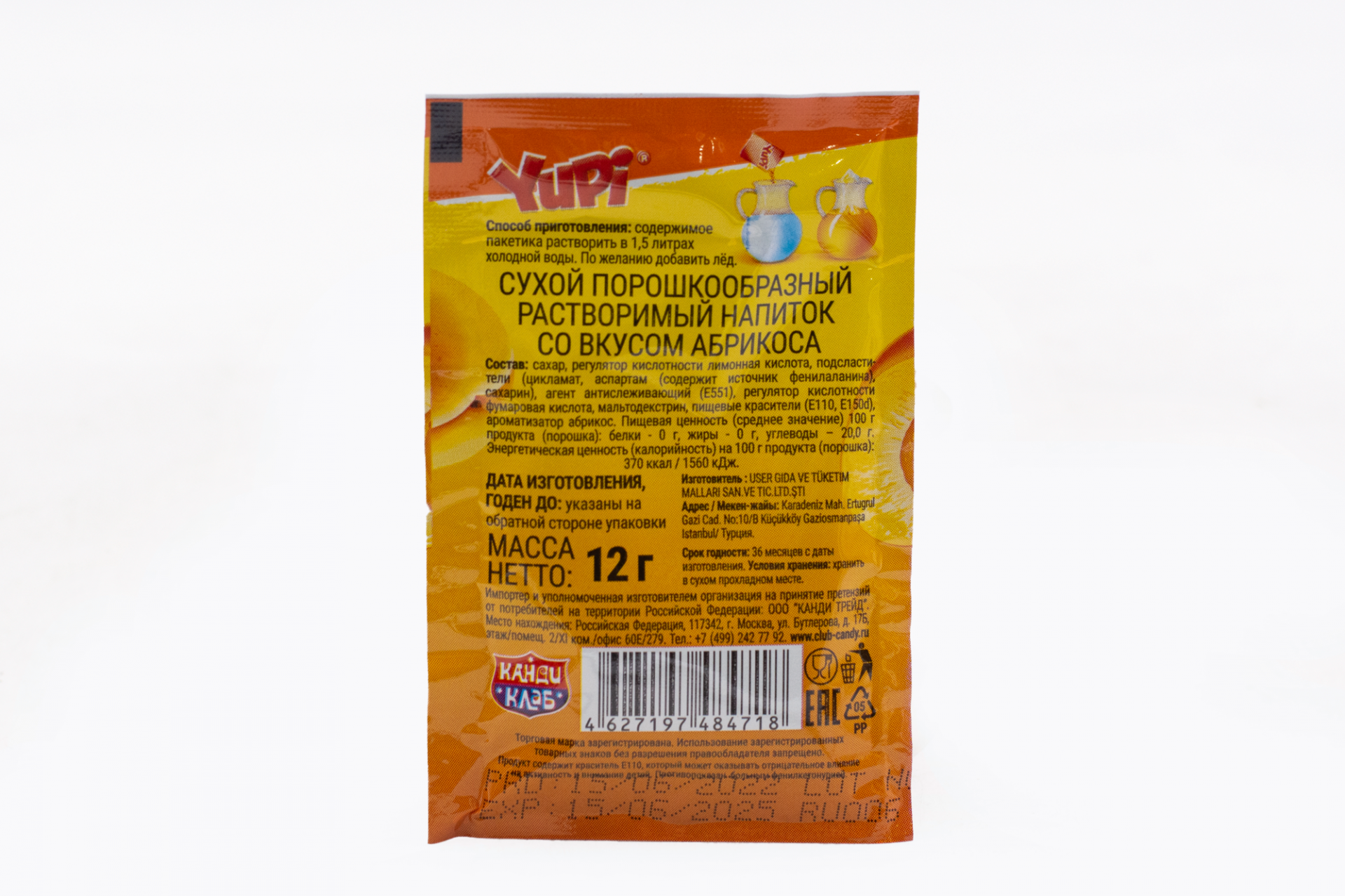 Растворимый напиток YUPI Абрикос 12 грамм12,30 руб. за штуку (в упак. 24 шт.) |