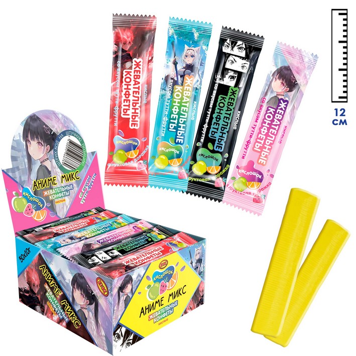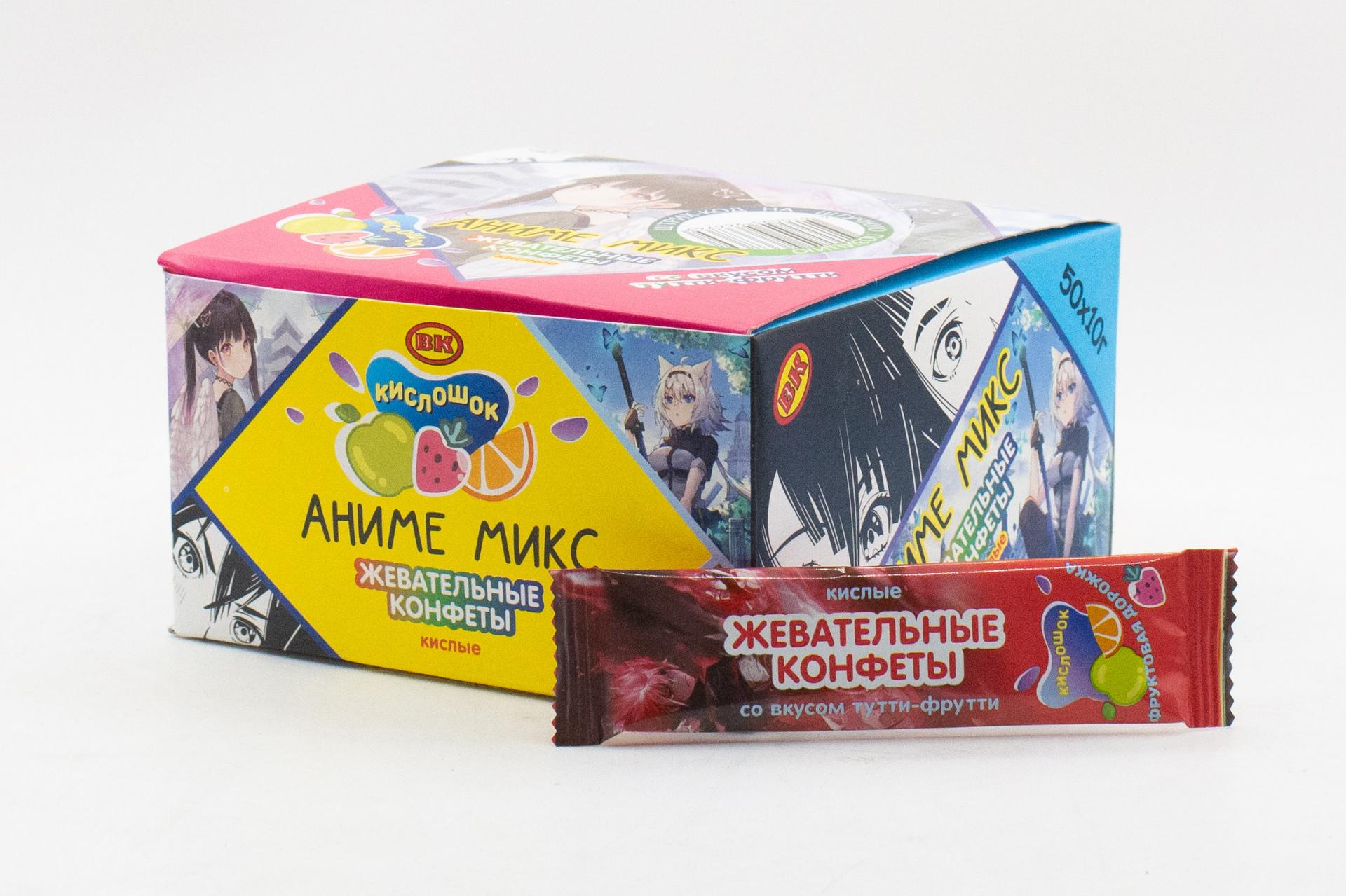 Жевательная конфета Кислошок Аниме микс со вкусом тутти-фрутти (Россия) 10г4,87 руб. за штуку (в упак. 50 шт.) |