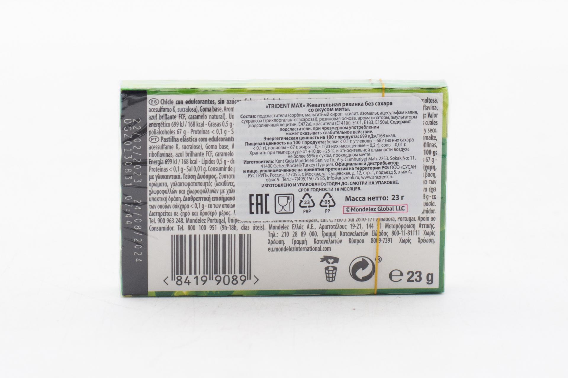Жевательная резинка Trident Мята 23 гр0,00 руб. за штуку (в упак. 12 шт.) |