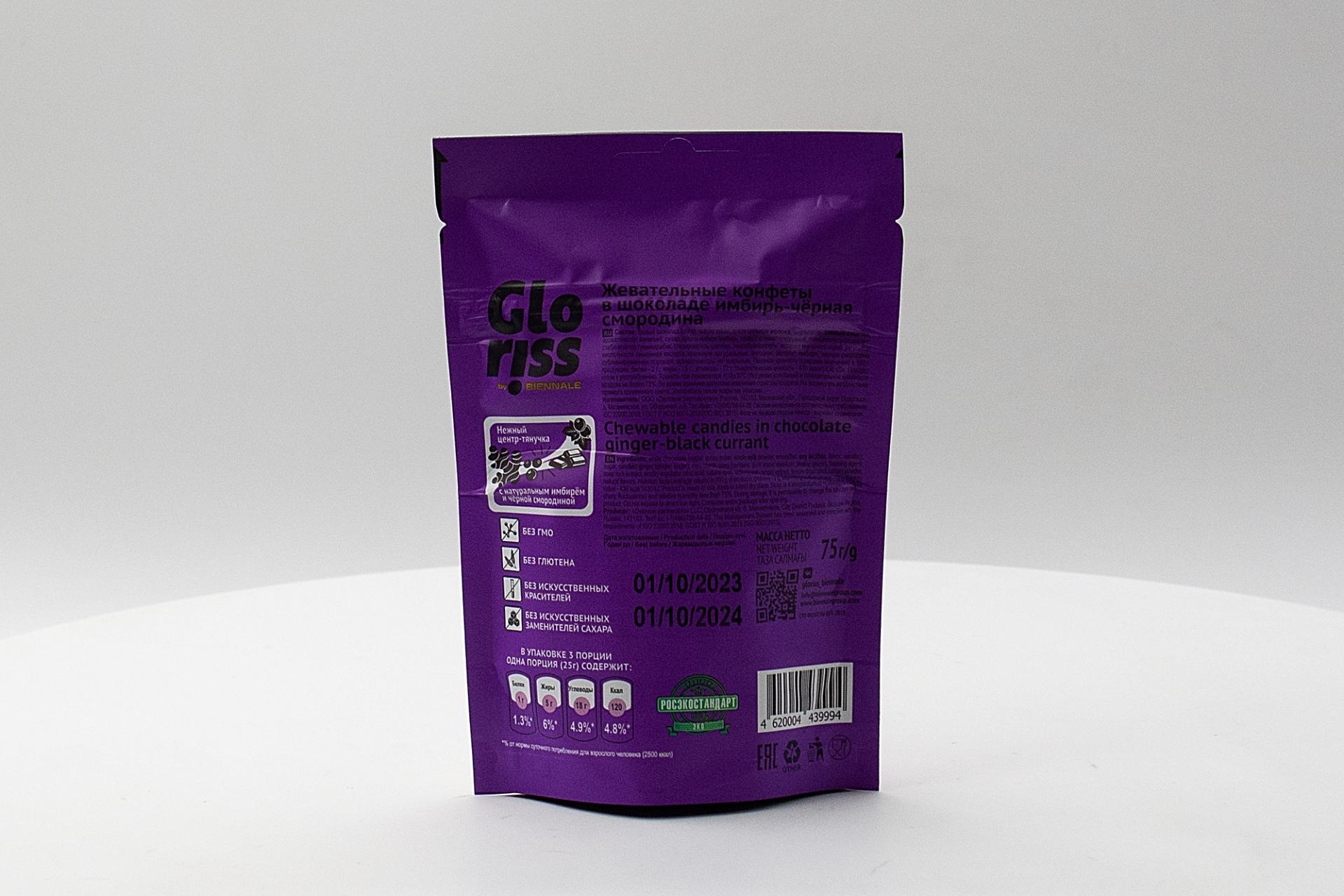 Жевательные конфеты в шоколаде Gloriss имбирь-черная смородина 75 гр97,50 руб. за штуку (в упак. 16 шт.) |
